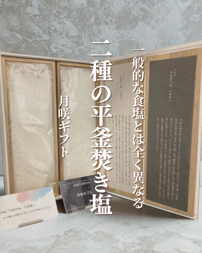 一般的な食塩とは全く異なる二種の平釜焚き塩「月咲(つきえみ)ギフト」山口県光市にある牛島(うしじま)という離島の海底湧水を平釜で薪を使ってじっくり10時間以上。手間暇かけて煮詰めて作られる、ミネラル豊富な伝統的な製法の自然塩です。━━━━━━━━━━━━━━️「月咲」の特徴━━━━━━━━━━━━━━製法: 薪の熱で平釜でじっくり煮詰める「平釜薪炊き製法」。原料: 牛島の海底から湧き出るミネラル豊富な海水。時間: 10~12時間かけて煮詰め、手間暇かけて作られる。希少性: 海水から採れる塩の量はわずか3%程度。味わい: ミネラル豊富で、甘みや旨味を感じるまろやかな味わい。━━━━━━━━━━━━━━こんな方におすすめ ━━━━━━━━━━━━━━✓ こだわりの調味料を使ったお料理を楽しみたい方 ✓ 歴史ある製法で作られた、贅沢な贈り物を探している方 ✓ 豊かな香りと旨みをお酒と一緒にゆっくり味わいたい方▼ご購入はちほ活まで @chihokatsu_tokuyamadeck#ちほ活 #徳山デッキ #周南市 #徳山 #山口県 #月咲 #金鋼石#平釜焚き塩 #高級塩 #塩 #牛島 #光市 #山口グルメ #お歳暮ギフト #最高の贅沢